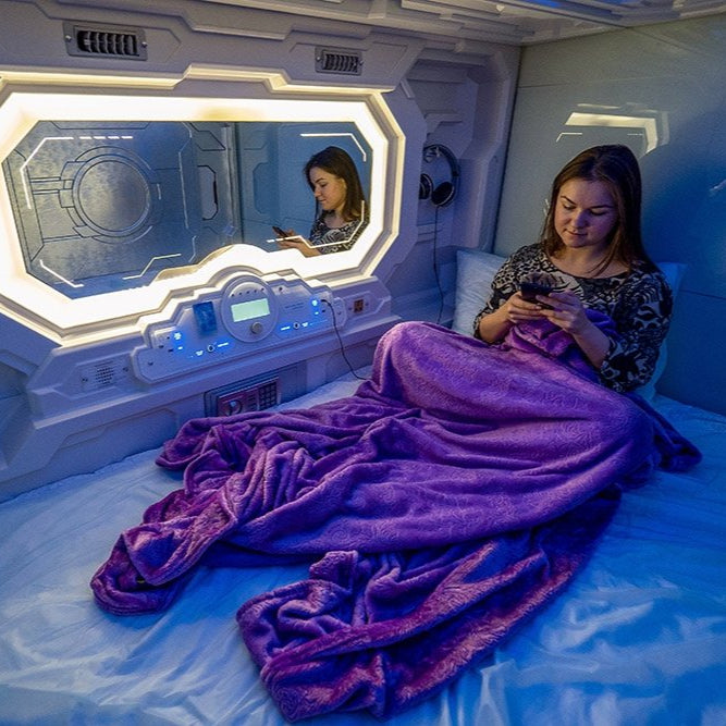 Equipped with an adjustable universal air intake vent, 30.0-rated fresh air ventilation, and voltage support from 110V to 220V, this model is ready for deployment across a wide range of environments. The capsule includes a sturdy integrated ladder, ambient LED lighting, and all the convenience of a modern rest pod — with a unique reversed orientation.